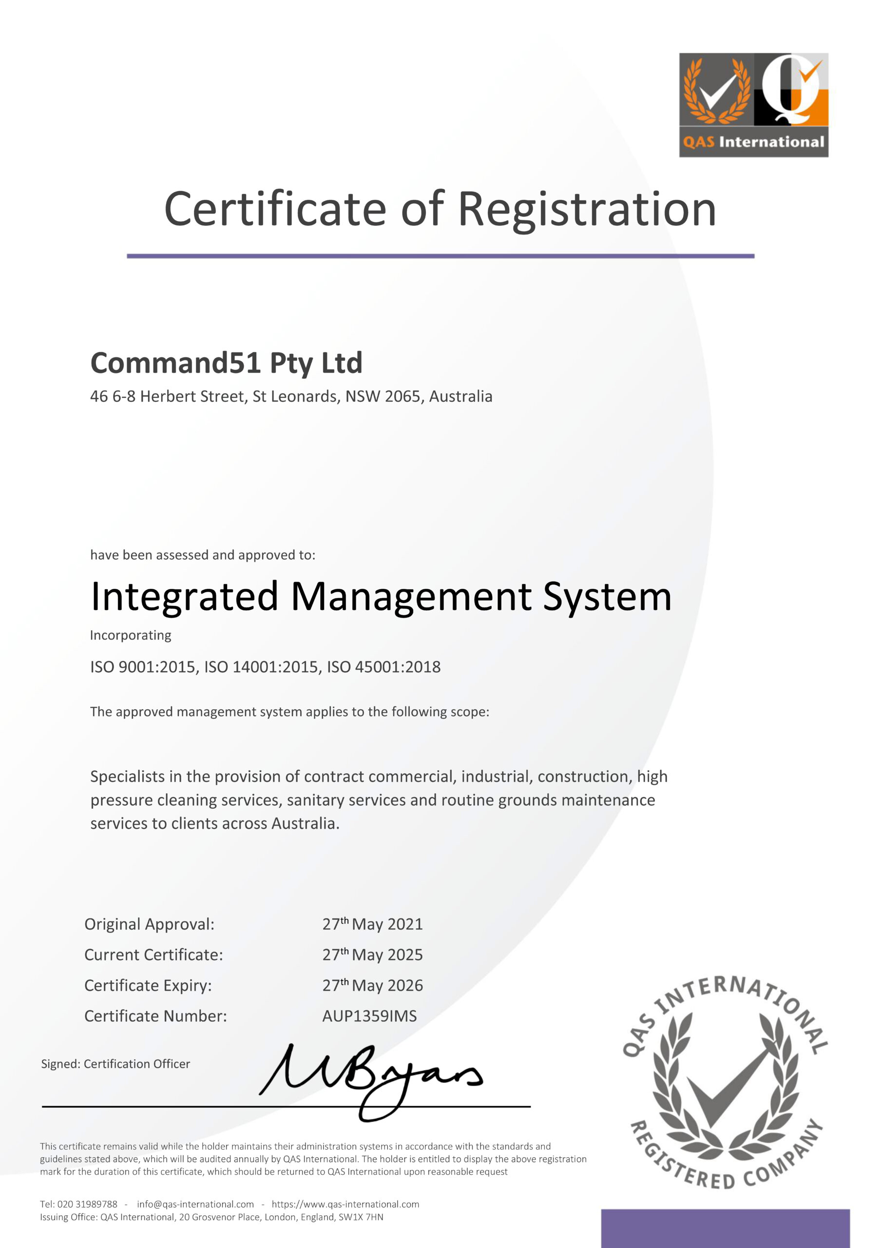 Command51 has proudly achieved ISO 9001 International Standard certification for its Quality Management System. Our Integrated Management System is now fully ISO-accredited across three key areas: Quality, Environmental Sustainability, and Health & Safety Management.
